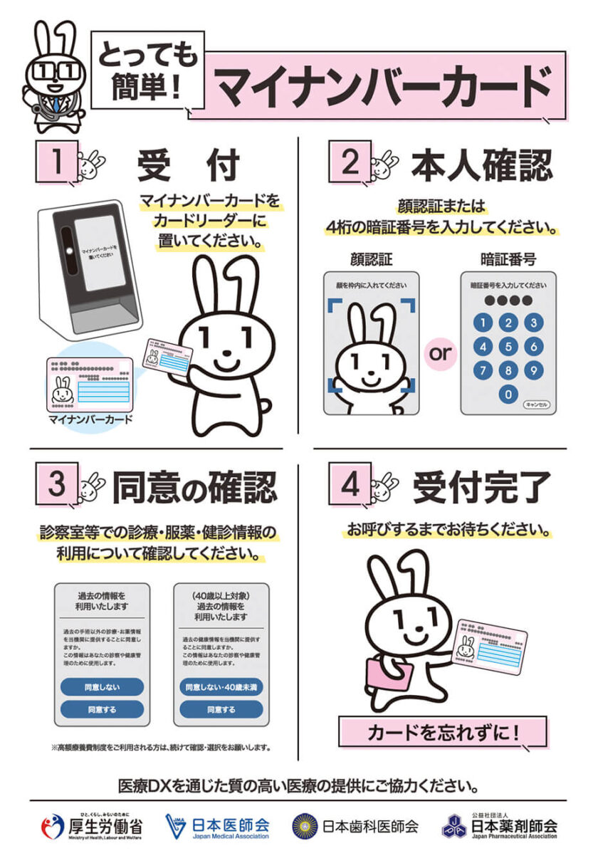 正確な情報を取得・活用し、質の高い医療の提供につなげるため、患者様にはマイナ保険証によるオンライン資格確認の利用にご協力をお願い致します。
